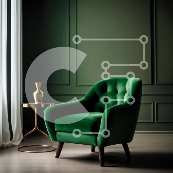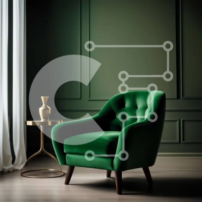 Υπάρχει δυνατότητα προσωποποίησης με δική σας φωτογραφία και προσαρμογής διαστάσεων κατόπιν παραγγελίας. Το συγεκεριμενο puzzle παρουσιαζει Αυτή η εικόνα παρουσιάζει μια πράσινη βελούδινη πολυθρόνα τοποθετημένη σε ένα δωμάτιο με χαμηλό φωτισμό με σκούρου πράσινους τοίχους. Η πολυθρόνα έχει χρυσή βάση και είναι επενδεδυμένη με βαθύ σμαραγδένιο βελούδο. Δίπλα στην πολυθρόνα είναι τοποθετημένο ένα τραπεζάκι με λευκό