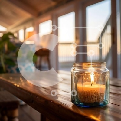Υπάρχει δυνατότητα προσωποποίησης με δική σας φωτογραφία και προσαρμογής διαστάσεων κατόπιν παραγγελίας. Το συγεκεριμενο puzzle παρουσιαζει Αυτή η φωτογραφία αποτυπώνει τη ζεστή ατμόσφαιρα ενός εσωτερικού χώρου με όμορφη θέα στην παραλία το ηλιοβασίλεμα. Σε πρώτο πλάνο, υπάρχει ένα γυάλινο βάζο με ένα αναμμένο κερί μέσα, που προσθέτει στη ζεστή και φιλόξενη ατμόσφαιρα. Το ξύλινο τραπέζι και το μεγάλο παράθυρο προσ