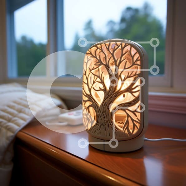 Υπάρχει δυνατότητα προσωποποίησης με δική σας φωτογραφία και προσαρμογής διαστάσεων κατόπιν παραγγελίας. Το συγεκεριμενο puzzle παρουσιαζει Αυτή η εικόνα παρουσιάζει ένα λευκό κεραμικό φωτιστικό με σχέδιο δέντρου που κάθεται σε ένα ξύλινο κομοδίνο. Το φωτιστικό έχει περίπλοκες λεπτομέρειες, όπως σκαλιστά φύλλα και κλαδιά. Βρίσκεται δίπλα σε παράθυρο, προσφέροντας θέα σε ένα δάσος με ψηλά δέντρα και καταγάλανο ουρα