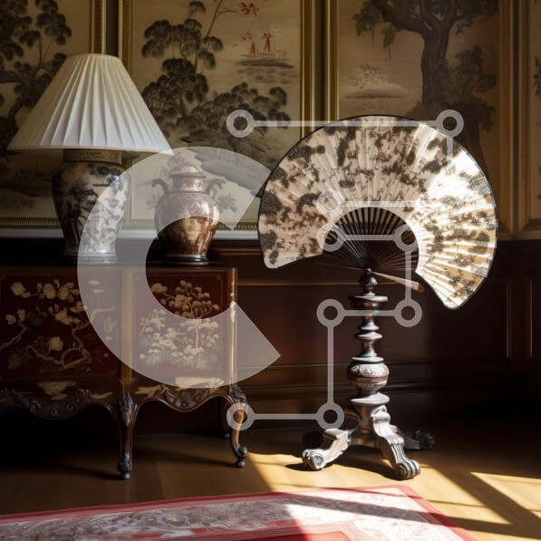 Υπάρχει δυνατότητα προσωποποίησης με δική σας φωτογραφία και προσαρμογής διαστάσεων κατόπιν παραγγελίας. Το συγεκεριμενο puzzle παρουσιαζει Αυτή η εικόνα παρουσιάζει ένα περίτεχνα διακοσμημένο σαλόνι με έναν μεγάλο ανεμιστήρα ως κεντρικό χαρακτηριστικό. Δύο βάζα είναι τοποθετημένα σε ένα πλαϊνό τραπέζι, με το ένα τοποθετημένο δίπλα στον ανεμιστήρα και το άλλο να φαίνεται πίσω του. Ο τοίχος πίσω από τον ανεμιστήρα