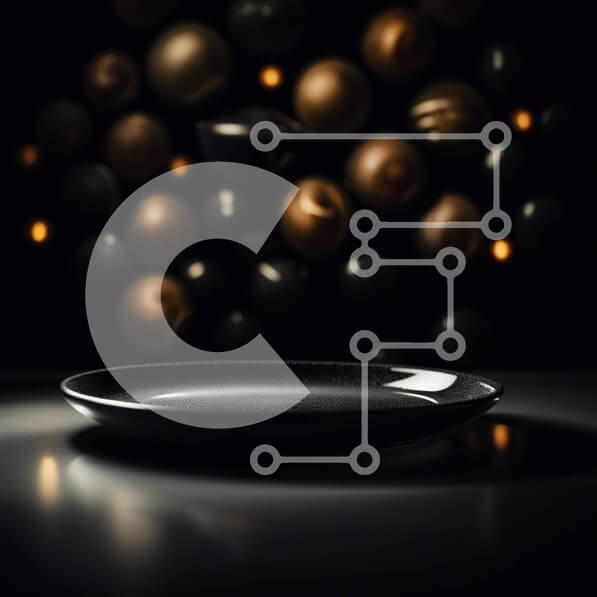 Υπάρχει δυνατότητα προσωποποίησης με δική σας φωτογραφία και προσαρμογής διαστάσεων κατόπιν παραγγελίας. Το συγεκεριμενο puzzle παρουσιαζει Αυτή η εικόνα παρουσιάζει ένα μινιμαλιστικό εσωτερικό σχέδιο με ένα μαύρο πιάτο τοποθετημένο σε ένα σκοτεινό τραπέζι. Ένας τοίχος στο βάθος διαθέτει χρυσές σφαίρες που κρέμονται από αυτόν, προσθέτοντας μια κομψή και διακοσμητική πινελιά στο χώρο. Ένα μοναδικό puzzle που συνδυ