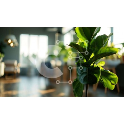Υπάρχει δυνατότητα προσωποποίησης με δική σας φωτογραφία και προσαρμογής διαστάσεων κατόπιν παραγγελίας. Το συγεκεριμενο puzzle παρουσιαζει Η εικόνα παρουσιάζει ένα εσωτερικό σχέδιο με ένα μεγάλο, πράσινο φυτό ως επίκεντρο. Το εργοστάσιο περιβάλλεται από τραπέζια και καρέκλες, υποδηλώνοντας ένα μέρος μιας διάταξης επίπλων. Πολλαπλές λάμπες διάσπαρτες σε όλο το δωμάτιο συμβάλλουν στη συνολική ατμόσφαιρα της σκηνής.