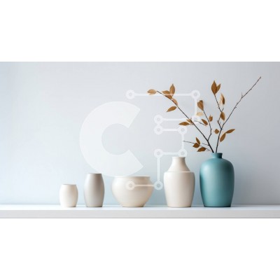 Υπάρχει δυνατότητα προσωποποίησης με δική σας φωτογραφία και προσαρμογής διαστάσεων κατόπιν παραγγελίας. Το συγεκεριμενο puzzle παρουσιαζει Αυτή η εικόνα παρουσιάζει τρία λευκά βάζα σε ένα ράφι. Κάθε βάζο έχει διαφορετικό σχήμα και σχέδιο, προσθέτοντας οπτικό ενδιαφέρον στη σκηνή. Ένα μικρό κλαδί με καφέ φύλλα τοποθετείται μπροστά από τα βάζα, δημιουργώντας ένα φυσικό στοιχείο. Το φόντο είναι ένα γαλάζιο χρώμα. Έ