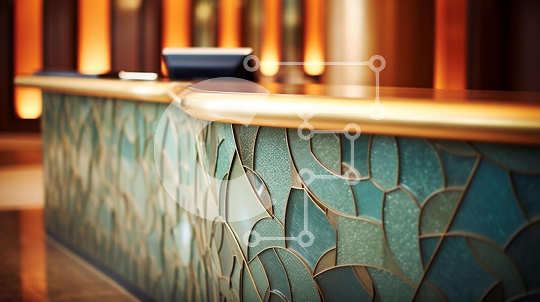 Υπάρχει δυνατότητα προσωποποίησης με δική σας φωτογραφία και προσαρμογής διαστάσεων κατόπιν παραγγελίας. Το συγεκεριμενο puzzle παρουσιαζει Η εικόνα απεικονίζει έναν χώρο υποδοχής με έναν ελκυστικό πάγκο με πλακάκια στη μέση του δωματίου. Δύο ράφια σε κάθε πλευρά θα μπορούσαν να χρησιμοποιηθούν για αποθήκευση. Η περιοχή είναι καλά φωτισμένη και φιλόξενη, δημιουργώντας μια φιλόξενη ατμόσφαιρα. Ένα μοναδικό puzzle