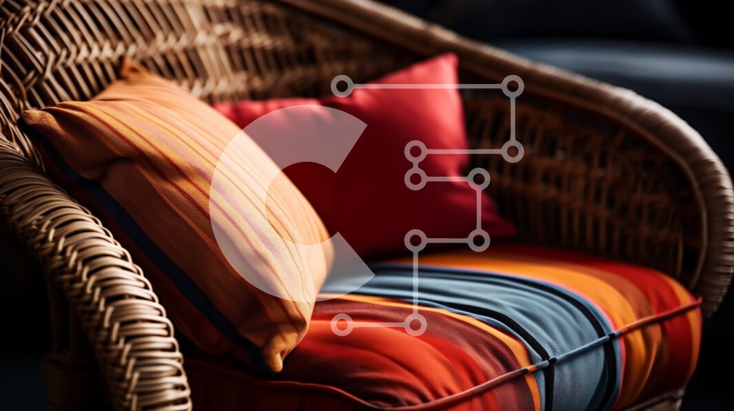 | Όνομα Προϊόντος | Intra Συλλεκτικό Ξύλινο Παζλ Plywood 4mm - Κοντινό πλάνο πολύχρωμης ψάθινης καρέκλας με ριγέ μαξιλάρια Σε Ξύλινο Κουτί - Διαστάσεις Puzzle: 10x10 cm – 25 κομμάτια |