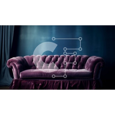 Υπάρχει δυνατότητα προσωποποίησης με δική σας φωτογραφία και προσαρμογής διαστάσεων κατόπιν παραγγελίας. Το συγεκεριμενο puzzle παρουσιαζει Η εικόνα παρουσιάζει έναν κομψό μωβ βελούδινο καναπέ με βολάν φούστα και φουντωτή πλάτη τοποθετημένη μπροστά από μια σκούρα μπλε κουρτίνα. Το δωμάτιο είναι χαμηλό φωτισμένο με μια ενιαία λάμπα που κρέμεται από την οροφή που παρέχει κάποιο φωτισμό. Ένα μοναδικό puzzle που συνδ