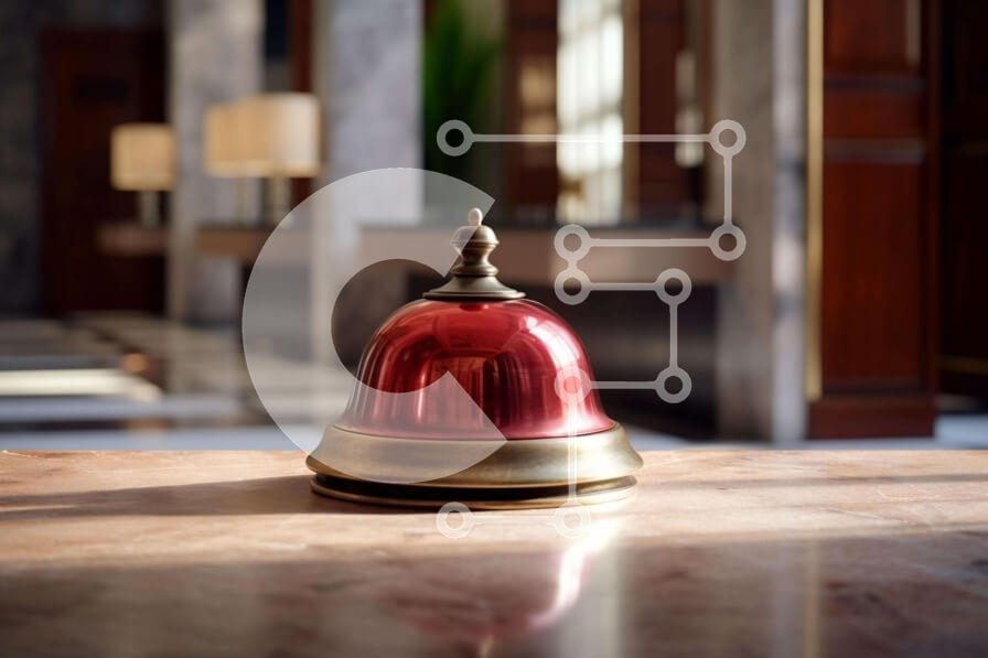 Υπάρχει δυνατότητα προσωποποίησης με δική σας φωτογραφία και προσαρμογής διαστάσεων κατόπιν παραγγελίας. Το συγεκεριμενο puzzle παρουσιαζει Η εικόνα απεικονίζει ένα κόκκινο κουδούνι πάνω από ένα μαρμάρινο τραπέζι σε ένα λόμπι. Το κουδούνι χρησιμεύει ως μέσο για να καλέσετε επισκέπτες ή να παράσχετε πληροφορίες σχετικά με τις υπηρεσίες του ξενοδοχείου. Το δωμάτιο είναι διακοσμημένο με φυτά και φωτιστικά, συμβάλλοντ