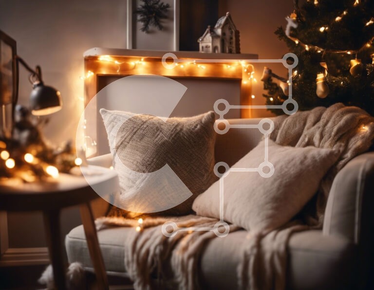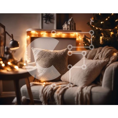Υπάρχει δυνατότητα προσωποποίησης με δική σας φωτογραφία και προσαρμογής διαστάσεων κατόπιν παραγγελίας. Το συγεκεριμενο puzzle παρουσιαζει Αυτή η εικόνα παρουσιάζει ένα άνετο σαλόνι διακοσμημένο για την περίοδο των γιορτών. Φώτα από πούλιες κρέμονται από την οροφή, φωτίζοντας το δωμάτιο. Ο καναπές είναι διακοσμημένος με πολλά μαξιλάρια και κουβέρτες, δημιουργώντας μια άνετη και φιλόξενη ατμόσφαιρα. Στη γωνία του