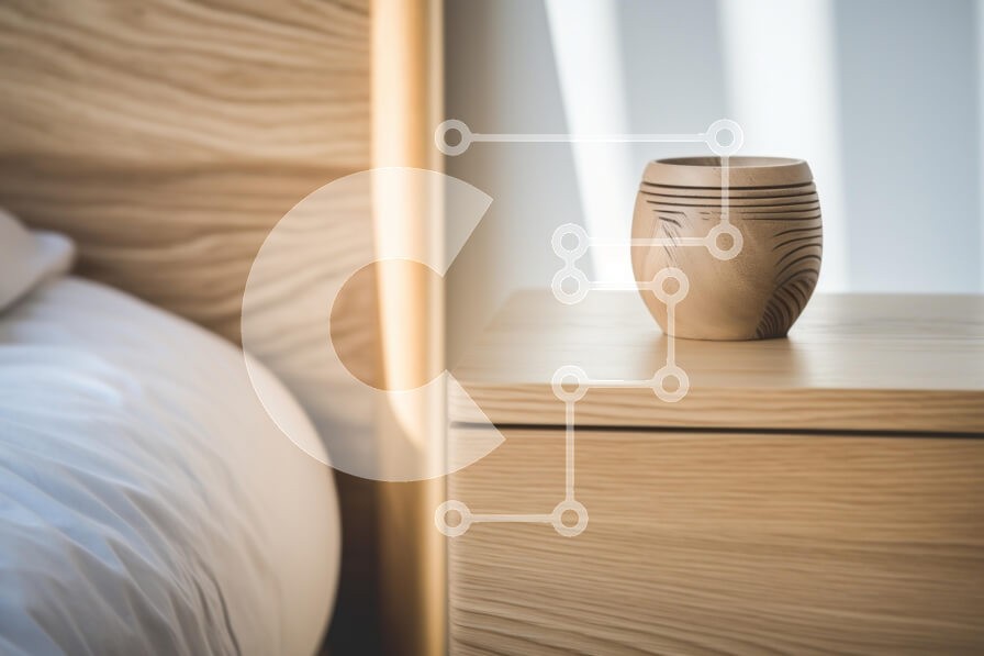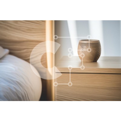 Υπάρχει δυνατότητα προσωποποίησης με δική σας φωτογραφία και προσαρμογής διαστάσεων κατόπιν παραγγελίας. Το συγεκεριμενο puzzle παρουσιαζει Η εικόνα παρουσιάζει μια όμορφα σχεδιασμένη σκηνή δίπλα στο κρεβάτι με ένα κομοδίνο από φυσικό ξύλο και ένα κομψό ξύλινο μπολ τοποθετημένο στην κορυφή. Οι ανοιχτόχρωμοι ξύλινοι τόνοι των επίπλων δημιουργούν μια ζεστή και φιλόξενη ατμόσφαιρα, που συμπληρώνεται από το απαλό λευκ