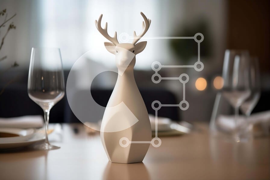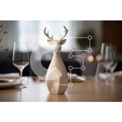 Υπάρχει δυνατότητα προσωποποίησης με δική σας φωτογραφία και προσαρμογής διαστάσεων κατόπιν παραγγελίας. Το συγεκεριμενο puzzle παρουσιαζει Αυτή η εικόνα παρουσιάζει ένα γλυπτό από λευκό κεφάλι ελαφιού τοποθετημένο σε τραπέζι φαγητού, που περιβάλλεται από ποτήρια κρασιού, πιάτα και μπολ διαφορετικών σχημάτων και μεγεθών. Το γλυπτό χρησιμεύει ως ένα εντυπωσιακό έργο τέχνης ή διακοσμητικό στοιχείο σε οποιοδήποτε δωμ