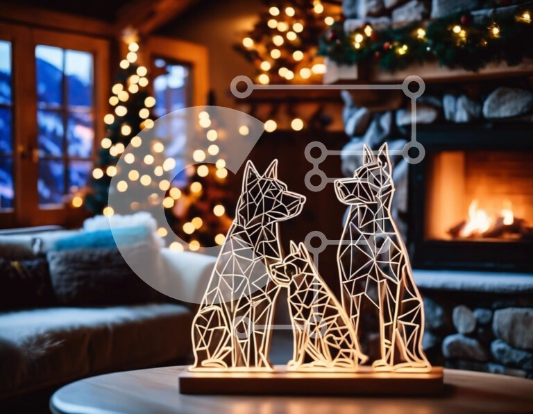 Υπάρχει δυνατότητα προσωποποίησης με δική σας φωτογραφία και προσαρμογής διαστάσεων κατόπιν παραγγελίας. Το συγεκεριμενο puzzle παρουσιαζει Αυτή η εικόνα παρουσιάζει ένα όμορφα διακοσμημένο σαλόνι για την περίοδο των γιορτών. Το δωμάτιο είναι γεμάτο με γιορτινά φώτα και διακοσμητικά, δημιουργώντας μια ζεστή και ζεστή ατμόσφαιρα. Ένα ζευγάρι ξύλινα γλυπτά σκύλου τοποθετείται σε ένα διακοσμητικό τραπεζάκι σαλονιού μ