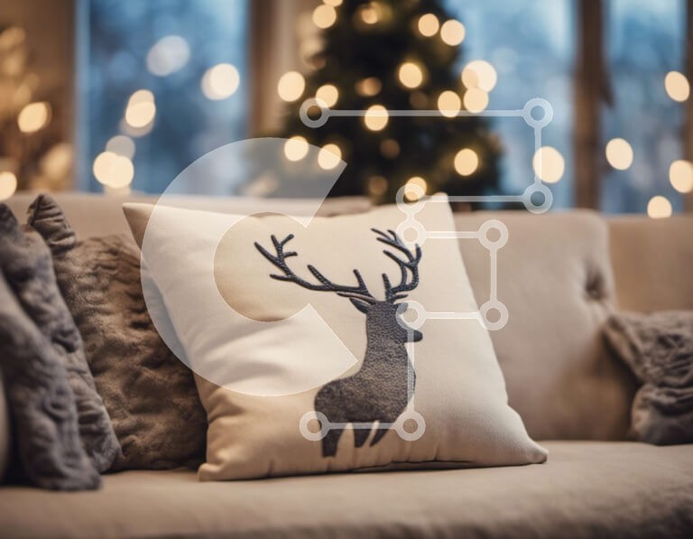 Υπάρχει δυνατότητα προσωποποίησης με δική σας φωτογραφία και προσαρμογής διαστάσεων κατόπιν παραγγελίας. Το συγεκεριμενο puzzle παρουσιαζει Αυτή η εικόνα παρουσιάζει ένα άνετο δωμάτιο διακοσμημένο για την περίοδο των γιορτών. Ένας καναπές με δύο μαξιλάρια είναι το επίκεντρο της σκηνής, το ένα από τα οποία διαθέτει διακοσμητικό σχέδιο ελαφιού. Το φόντο είναι γεμάτο με πολλά φώτα, δημιουργώντας μια εορταστική ατμόσφ