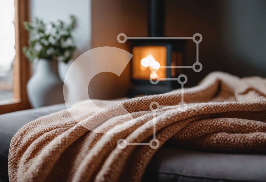 Υπάρχει δυνατότητα προσωποποίησης με δική σας φωτογραφία και προσαρμογής διαστάσεων κατόπιν παραγγελίας. Το συγεκεριμενο puzzle παρουσιαζει Αυτή η εικόνα παρουσιάζει μια ζεστή κουβέρτα τυλιγμένη γύρω από τον καναπέ μπροστά από ένα ανοιχτό τζάκι. Ένα φυτό σε γλάστρα υπάρχει επίσης στο δωμάτιο, προσθέτοντας μια πινελιά πρασίνου. Η σκηνή υποδηλώνει ζεστασιά και θαλπωρή, ιδανική για χαλάρωση σε μια κρύα μέρα. Η φιλόξε
