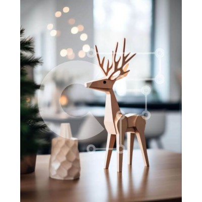 Υπάρχει δυνατότητα προσωποποίησης με δική σας φωτογραφία και προσαρμογής διαστάσεων κατόπιν παραγγελίας. Το συγεκεριμενο puzzle παρουσιαζει Αυτή η εικόνα παρουσιάζει ένα ξύλινο ειδώλιο ελαφιού τοποθετημένο σε ένα τραπέζι σε ένα σαλόνι. Περιβάλλεται από άλλα διακοσμητικά αντικείμενα, όπως βάζα και κηροπήγια, υποδηλώνοντας ότι αποτελεί μέρος μιας διακοσμητικής έκθεσης. Δύο μικρά φυτά σε γλάστρες προσθέτουν περαιτέρω
