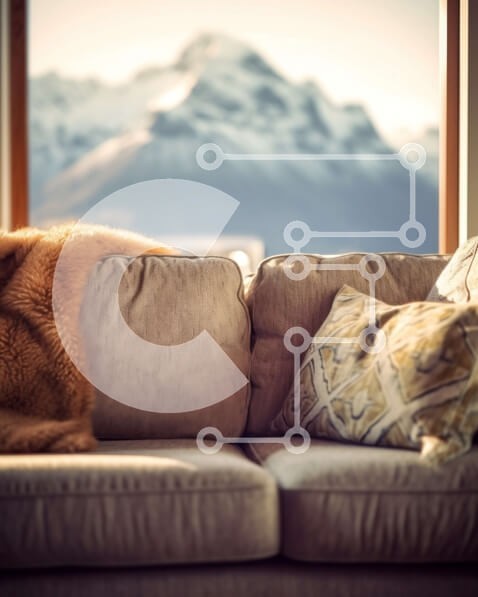 Υπάρχει δυνατότητα προσωποποίησης με δική σας φωτογραφία και προσαρμογής διαστάσεων κατόπιν παραγγελίας. Το συγεκεριμενο puzzle παρουσιαζει Αυτή η φιλόξενη εικόνα ενός καθιστικού διαθέτει μια καφέ γούνινη κουβέρτα ντυμένη στο πίσω μέρος ενός καναπέ, με εκπληκτική θέα στις χιονισμένες βουνοκορφές ορατή από τα μεγάλα παράθυρα. Το δωμάτιο είναι φωτεινό και ευάερο, με άφθονο φυσικό φως να πλημμυρίζει για να δημιουργήσ