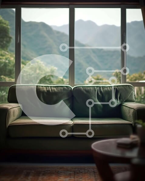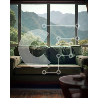 Υπάρχει δυνατότητα προσωποποίησης με δική σας φωτογραφία και προσαρμογής διαστάσεων κατόπιν παραγγελίας. Το συγεκεριμενο puzzle παρουσιαζει Αυτή η εσωτερική φωτογραφία διαθέτει έναν πράσινο δερμάτινο καναπέ με ξύλινο σκελετό, που βρίσκεται μπροστά από ένα μεγάλο γυάλινο παράθυρο με θέα σε μια πανέμορφη οροσειρά. Οι τοίχοι είναι βαμμένοι λευκοί, δημιουργώντας μια φωτεινή και ευρύχωρη ατμόσφαιρα, ενώ υπάρχει ένα ξύλ