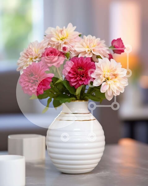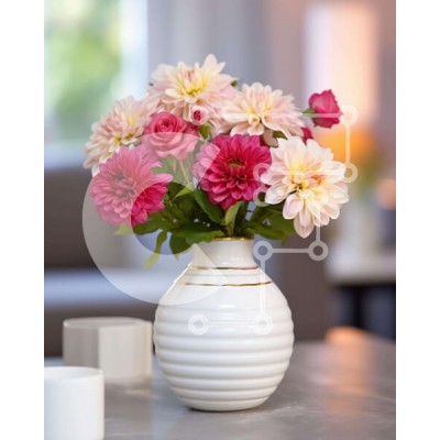 Υπάρχει δυνατότητα προσωποποίησης με δική σας φωτογραφία και προσαρμογής διαστάσεων κατόπιν παραγγελίας. Το συγεκεριμενο puzzle παρουσιαζει Αυτή η εικόνα απεικονίζει ένα σαλόνι με μια όμορφη διάταξη από ροζ και λευκά λουλούδια σε ένα βάζο. Τα λουλούδια προσθέτουν ένα ποπ χρώμα στο δωμάτιο και δημιουργούν μια φιλόξενη ατμόσφαιρα. Δύο φλιτζάνια καφέ τοποθετούνται δίπλα στο βάζο, υποδηλώνοντας τη δυνατότητα να απολαύ