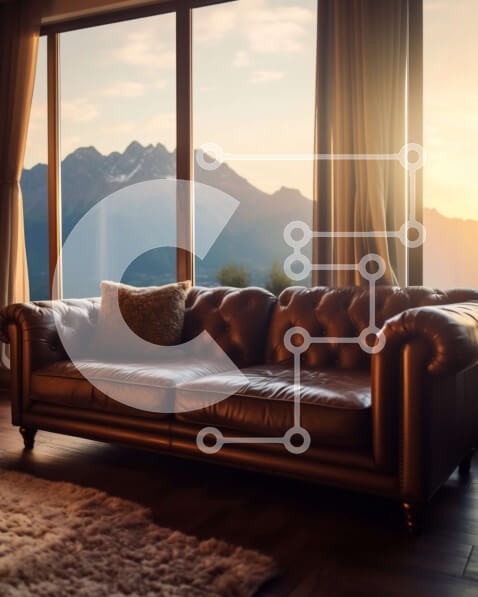 Υπάρχει δυνατότητα προσωποποίησης με δική σας φωτογραφία και προσαρμογής διαστάσεων κατόπιν παραγγελίας. Το συγεκεριμενο puzzle παρουσιαζει Αυτή η εικόνα παρουσιάζει έναν δερμάτινο καναπέ μπροστά από ένα μεγάλο παράθυρο με θέα σε μια οροσειρά το ηλιοβασίλεμα. Τα ζεστά χρώματα του ήλιου που δύει ρίχνουν μια γαλήνια λάμψη στο δωμάτιο, δημιουργώντας μια ζεστή και φιλόξενη ατμόσφαιρα. Ιδανικό για κάθε σχέδιο εσωτερικο
