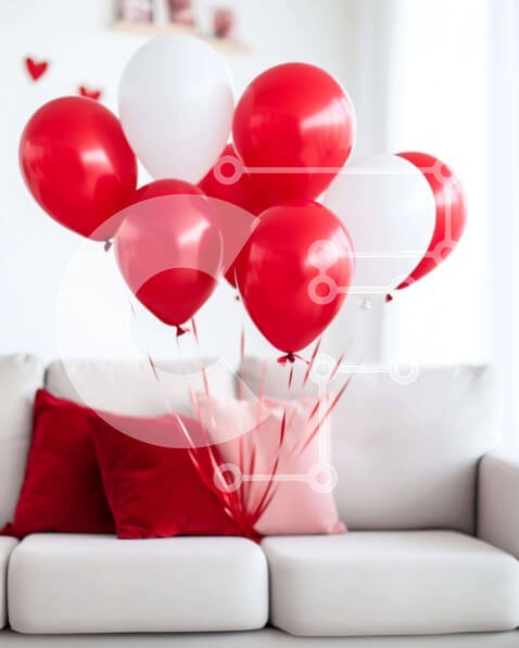 Υπάρχει δυνατότητα προσωποποίησης με δική σας φωτογραφία και προσαρμογής διαστάσεων κατόπιν παραγγελίας. Το συγεκεριμενο puzzle παρουσιαζει Αυτή η εικόνα δείχνει έναν λευκό καναπέ στολισμένο με κόκκινα και λευκά μπαλόνια, δημιουργώντας μια εορταστική ατμόσφαιρα. Δύο μαξιλάρια τοποθετούνται στον καναπέ, προσθέτοντας στη ζεστή και φιλόξενη όψη του. Το δωμάτιο είναι πιθανότατα διακοσμημένο για την Ημέρα του Αγίου Βαλ