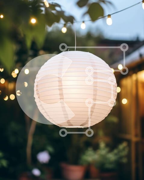 Υπάρχει δυνατότητα προσωποποίησης με δική σας φωτογραφία και προσαρμογής διαστάσεων κατόπιν παραγγελίας. Το συγεκεριμενο puzzle παρουσιαζει Η εικόνα απεικονίζει ένα λευκό χάρτινο φανάρι που κρέμεται από την οροφή, μαζί με φωτάκια με κορδόνια και φυτά σε γλάστρες που το περιβάλλουν. Είναι πιθανό ότι το φανάρι είναι μέρος ενός υπαίθριου σκηνικού, καθώς υπάρχουν αρκετές γλάστρες διάσπαρτες στην περιοχή. Μπορεί επίσης