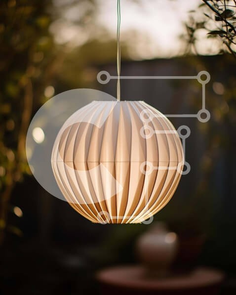 Υπάρχει δυνατότητα προσωποποίησης με δική σας φωτογραφία και προσαρμογής διαστάσεων κατόπιν παραγγελίας. Το συγεκεριμενο puzzle παρουσιαζει Η εικόνα παρουσιάζει ένα φωτιστικό που κρέμεται από την οροφή. Είναι κατασκευασμένο από λευκό χαρτί και φαίνεται να αιωρείται στον αέρα. Υπάρχουν πολλά φυτά σε γλάστρες γύρω από την περίμετρο του φωτιστικού, γεγονός που υποδηλώνει ότι μπορεί να είναι μέρος ενός εξωτερικού χώρο