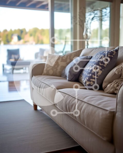 Υπάρχει δυνατότητα προσωποποίησης με δική σας φωτογραφία και προσαρμογής διαστάσεων κατόπιν παραγγελίας. Το συγεκεριμενο puzzle παρουσιαζει Αυτή η εικόνα διαθέτει ένα άνετο σαλόνι με έναν μπεζ καναπέ, μπλε και λευκά μαξιλάρια και ένα ξύλινο τραπεζάκι. Τα μεγάλα παράθυρα προσφέρουν εκπληκτική θέα στο υδάτινο σώμα έξω. Οι ανοιχτό γκρι τοίχοι και το λευκό χαλί δημιουργούν μια ευάερη και φωτεινή ατμόσφαιρα, καθιστώντα