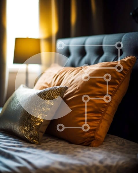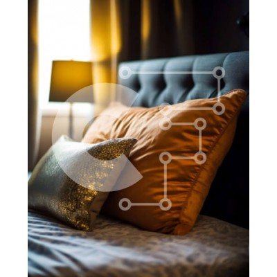 Υπάρχει δυνατότητα προσωποποίησης με δική σας φωτογραφία και προσαρμογής διαστάσεων κατόπιν παραγγελίας. Το συγεκεριμενο puzzle παρουσιαζει Αυτή η εικόνα παρουσιάζει ένα μοντέρνο μαύρο και πορτοκαλί υπνοδωμάτιο. Το δερμάτινο κεφαλάρι και τα ασορτί κομοδίνα δημιουργούν μια κομψή και πολυτελή εμφάνιση, ενώ το ασπρόμαυρο ριγέ πάπλωμα προσθέτει μια διασκεδαστική και μοναδική πινελιά. Δύο μαύρες λάμπες φαίνονται εκατέρ
