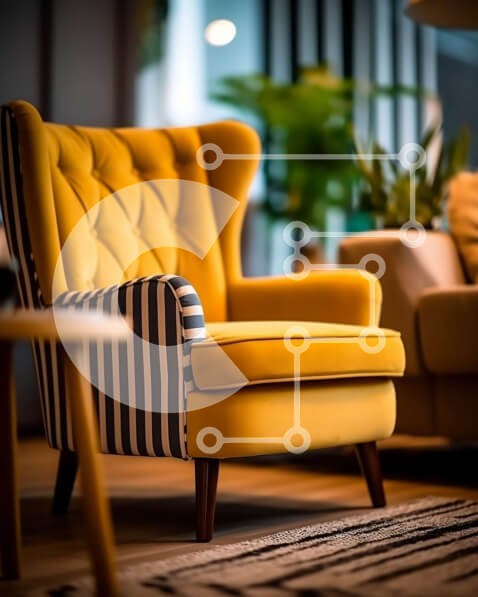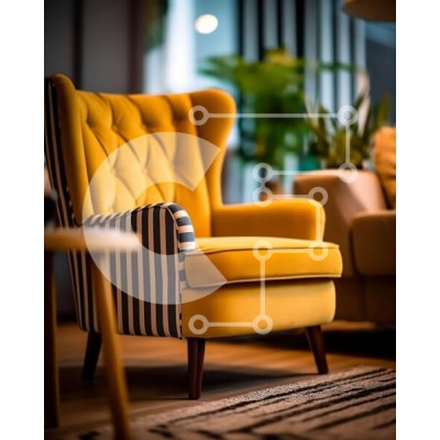 Υπάρχει δυνατότητα προσωποποίησης με δική σας φωτογραφία και προσαρμογής διαστάσεων κατόπιν παραγγελίας. Το συγεκεριμενο puzzle παρουσιαζει Αυτή η εικόνα παρουσιάζει μια κίτρινη πολυθρόνα με ασπρόμαυρη ριγέ ταπετσαρία σε ένα μοντέρνο σαλόνι. Το δωμάτιο έχει δάπεδο από μασίφ ξύλο και άφθονο φυσικό φως που εισέρχεται από ένα μεγάλο παράθυρο. Η διακόσμηση είναι ένας συνδυασμός μινιμαλιστικών και μποέμ στοιχείων, όπως