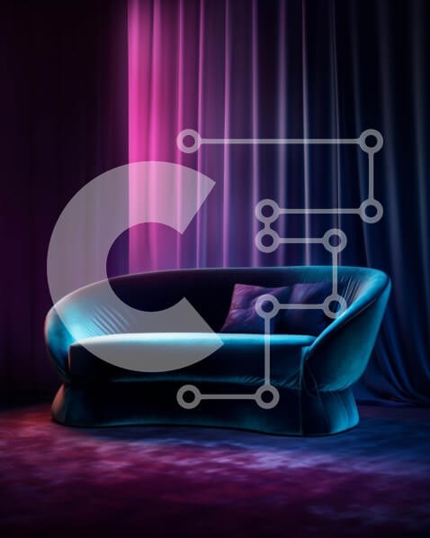 Υπάρχει δυνατότητα προσωποποίησης με δική σας φωτογραφία και προσαρμογής διαστάσεων κατόπιν παραγγελίας. Το συγεκεριμενο puzzle παρουσιαζει Αυτή η εικόνα παρουσιάζει έναν μπλε καναπέ μπροστά από μια όμορφα φωτισμένη κουρτίνα. Ο ροζ και μωβ φωτισμός δημιουργεί μια μοναδική και κομψή ατμόσφαιρα που είναι ιδανική για κάθε σχεδιαστικό έργο. Ένα μοναδικό puzzle που συνδυάζει ποιότητα, αισθητική και εμπειρία. Υλικό: Κ