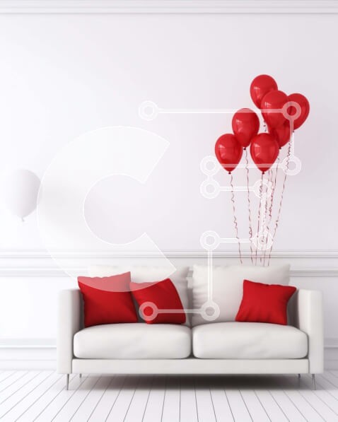 Υπάρχει δυνατότητα προσωποποίησης με δική σας φωτογραφία και προσαρμογής διαστάσεων κατόπιν παραγγελίας. Το συγεκεριμενο puzzle παρουσιαζει Αυτή η εικόνα δείχνει έναν λευκό καναπέ στολισμένο με κόκκινα μπαλόνια που κρέμονται από την οροφή. Ο καναπές είναι εξοπλισμένος με πολλά μαξιλάρια, παρέχοντας άνεση και στυλ. Ένα ροζ μπαλόνι είναι επίσης παρόν στη σκηνή, προσθέτοντας στη συνολική διάταξη. Ένα μοναδικό puzzle