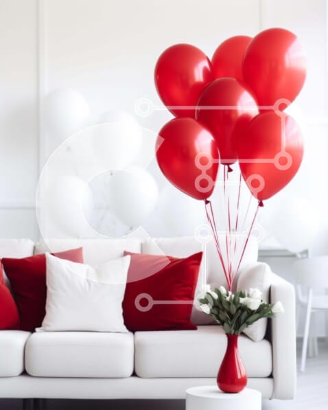 Υπάρχει δυνατότητα προσωποποίησης με δική σας φωτογραφία και προσαρμογής διαστάσεων κατόπιν παραγγελίας. Το συγεκεριμενο puzzle παρουσιαζει Αυτή η εικόνα παρουσιάζει έναν λευκό καναπέ με κόκκινα μπαλόνια τοποθετημένα στην κορυφή. Ένα βάζο είναι τοποθετημένο στο κέντρο του καναπέ, δίνοντας την ευκαιρία για διακοσμητικά αντικείμενα. Το δωμάτιο είναι διακοσμημένο με διάσπαρτα μαξιλάρια, προσφέροντας επιπλέον επιλογές