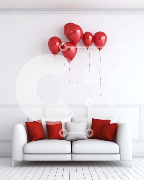 Υπάρχει δυνατότητα προσωποποίησης με δική σας φωτογραφία και προσαρμογής διαστάσεων κατόπιν παραγγελίας. Το συγεκεριμενο puzzle παρουσιαζει Αυτή η εικόνα παρουσιάζει ένα άνετο σαλόνι με έναν λευκό καναπέ ως κεντρικό σημείο. Κόκκινα μπαλόνια κρέμονται από το ταβάνι, προσθέτοντας μια παιχνιδιάρικη πινελιά στο χώρο. Τα μαξιλάρια είναι διάσπαρτα σε όλο το δωμάτιο, δημιουργώντας μια άνετη και φιλόξενη ατμόσφαιρα. Ο κεν