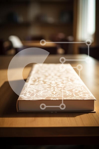 Υπάρχει δυνατότητα προσωποποίησης με δική σας φωτογραφία και προσαρμογής διαστάσεων κατόπιν παραγγελίας. Το συγεκεριμενο puzzle παρουσιαζει Η εικόνα παρουσιάζει ένα όμορφα σχεδιασμένο βιβλίο τοποθετημένο σε ένα ξύλινο τραπέζι σε ένα απαλά φωτισμένο εσωτερικό περιβάλλον. Το βιβλίο έχει ένα περίπλοκο εξώφυλλο με σχέδια, το οποίο είναι ανοιχτόχρωμο και κάνει ωραία αντίθεση στο ζεστό ξύλο του τραπεζιού. Το φόντο είναι