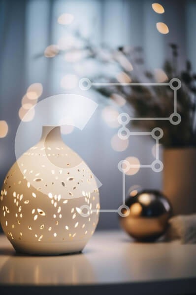 Υπάρχει δυνατότητα προσωποποίησης με δική σας φωτογραφία και προσαρμογής διαστάσεων κατόπιν παραγγελίας. Το συγεκεριμενο puzzle παρουσιαζει Αυτή η εικόνα παρουσιάζει ένα λευκό βάζο με διακοσμητικές λεπτομέρειες, το οποίο μπορεί να χρησιμοποιηθεί ως διαχύτης αρωματοθεραπείας. Τοποθετείται στο τραπέζι μπροστά από δύο φυτά σε γλάστρες, υποδηλώνοντας ότι μπορεί να είναι μέρος μιας διάταξης ή διακόσμησης. Υπάρχουν επίσ