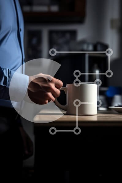 | Όνομα Προϊόντος | Intra Συλλεκτικό Ξύλινο Παζλ Plywood 4mm - Χέρι που κρατά μια λευκή κούπα καφέ σε ένα ζεστό περιβάλλον κουζίνας Σε Ξύλινο Κουτί - Διαστάσεις Puzzle: 10x10 cm – 25 κομμάτια |