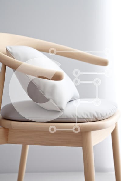 Υπάρχει δυνατότητα προσωποποίησης με δική σας φωτογραφία και προσαρμογής διαστάσεων κατόπιν παραγγελίας. Το συγεκεριμενο puzzle παρουσιαζει Η εικόνα παρουσιάζει μια μοντέρνα ξύλινη καρέκλα με ανοιχτόχρωμο φινίρισμα. Περιλαμβάνει ένα απαλό, στρογγυλό γκρι μαξιλάρι τοποθετημένο στο κάθισμα, ενισχύοντας την άνεση της καρέκλας. Το φόντο είναι μινιμαλιστικό, επιδεικνύοντας έναν ανοιχτό γκρι τοίχο που συμπληρώνει το σχέ