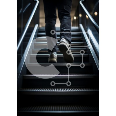 Υπάρχει δυνατότητα προσωποποίησης με δική σας φωτογραφία και προσαρμογής διαστάσεων κατόπιν παραγγελίας. Το συγεκεριμενο puzzle παρουσιαζει Η εικόνα απεικονίζει ένα άτομο να ανεβαίνει μια σειρά από κομψές, μοντέρνες σκάλες. Η εστίαση είναι στα πόδια του ατόμου καθώς ανεβαίνουν, επιδεικνύοντας κομψά υποδήματα και κομψά παντελόνια. Οι σκάλες είναι καλά φωτισμένες, με γυαλισμένη επιφάνεια και το κιγκλίδωμα προσθέτει