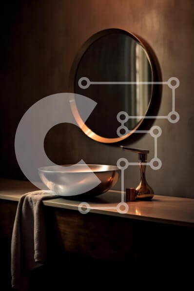 Υπάρχει δυνατότητα προσωποποίησης με δική σας φωτογραφία και προσαρμογής διαστάσεων κατόπιν παραγγελίας. Το συγεκεριμενο puzzle παρουσιαζει Αυτή η εικόνα παρουσιάζει ένα μοντέρνο μπάνιο με έναν στρογγυλό καθρέφτη που κρέμεται πάνω από έναν μεταλλικό νεροχύτη που έχει μία μόνο βρύση. Ο πάγκος είναι κατασκευασμένος από μάρμαρο, με μια πετσέτα και ένα μπουκάλι σαμπουάν τοποθετημένο πάνω του. Ένα μοναδικό puzzle που