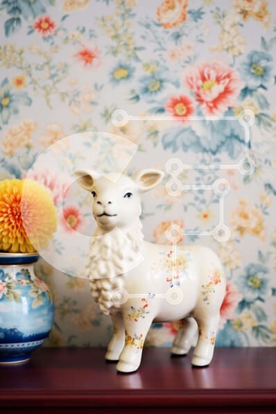 Υπάρχει δυνατότητα προσωποποίησης με δική σας φωτογραφία και προσαρμογής διαστάσεων κατόπιν παραγγελίας. Το συγεκεριμενο puzzle παρουσιαζει Αυτή η εικόνα παρουσιάζει μια γοητευτική εσωτερική διακόσμηση με ένα λευκό ειδώλιο προβάτου τοποθετημένο σε μια υπέροχη ταπετσαρία με λουλούδια. Ένα βάζο με λουλούδια προσθέτει μια κομψή πινελιά στη σκηνή, δημιουργώντας μια ζεστή και φιλόξενη ατμόσφαιρα. Ένα μοναδικό puzzle π