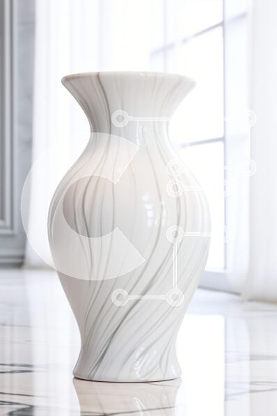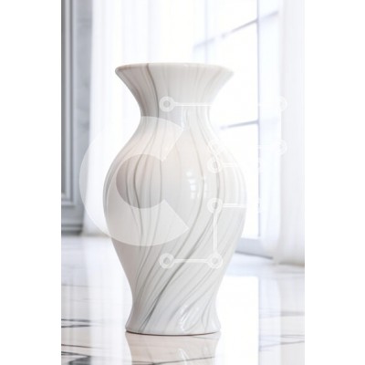 Υπάρχει δυνατότητα προσωποποίησης με δική σας φωτογραφία και προσαρμογής διαστάσεων κατόπιν παραγγελίας. Το συγεκεριμενο puzzle παρουσιαζει Αυτή η εικόνα παρουσιάζει ένα όμορφα σχεδιασμένο λευκό βάζο με κομψά στροβιλιζόμενα σχέδια, που στέκεται με χάρη σε ένα γυαλισμένο μαρμάρινο δάπεδο. Το φόντο φωτίζεται απαλά από το φυσικό φως που φιλτράρει μέσα από διάφανες κουρτίνες, δημιουργώντας μια γαλήνια και εκλεπτυσμένη