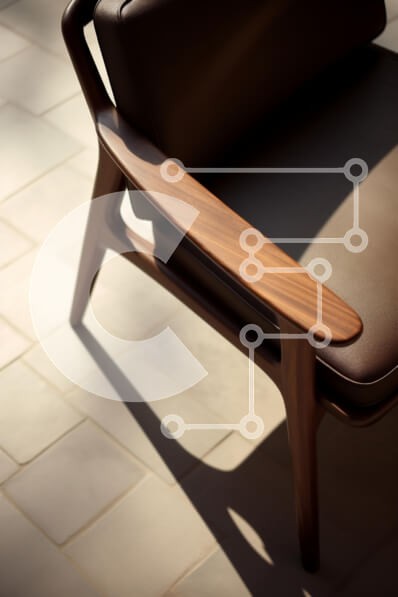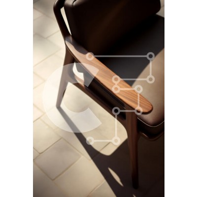 Υπάρχει δυνατότητα προσωποποίησης με δική σας φωτογραφία και προσαρμογής διαστάσεων κατόπιν παραγγελίας. Το συγεκεριμενο puzzle παρουσιαζει Η εικόνα δείχνει μια μοντέρνα, κομψή καρέκλα με ξύλινο υποβραχιόνιο και κομψό, επενδυμένο κάθισμα και πλάτη. Η καρέκλα είναι τοποθετημένη σε ανοιχτόχρωμο δάπεδο με πλακάκια, με σκιές από το υποβραχιόνιο δημιουργώντας ένα ενδιαφέρον οπτικό αποτέλεσμα. Οι ζεστοί τόνοι του ξύλου
