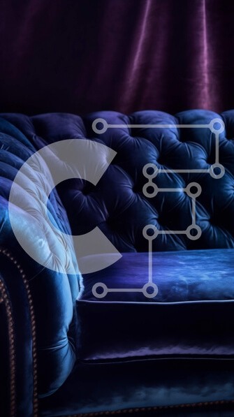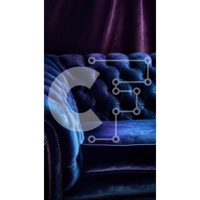 Υπάρχει δυνατότητα προσωποποίησης με δική σας φωτογραφία και προσαρμογής διαστάσεων κατόπιν παραγγελίας. Το συγεκεριμενο puzzle παρουσιαζει Αυτή η εικόνα διαθέτει έναν μπλε βελούδινο καναπέ με χρυσές πινελιές. Ο καναπές έχει φουντωτό σχέδιο και χρυσά καρφιά στα μπράτσα και την πλάτη. Τα μαξιλάρια είναι επίσης επενδυμένα με ασορτί μπλε βελούδο. Το δωμάτιο είναι χαμηλό φωτισμένο, με μια μωβ κουρτίνα στο βάθος, δημιο