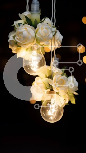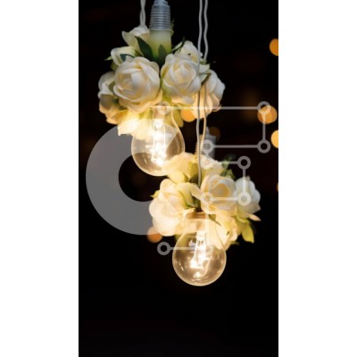 Υπάρχει δυνατότητα προσωποποίησης με δική σας φωτογραφία και προσαρμογής διαστάσεων κατόπιν παραγγελίας. Το συγεκεριμενο puzzle παρουσιαζει Η εικόνα παρουσιάζει δύο λαμπτήρες φωτός που κρέμονται από την οροφή, ο καθένας στολισμένος με μια σύνθεση λευκού λουλουδιού. Το δωμάτιο φωτίζεται με διάσπαρτα φώτα, προσθέτοντας στη συνολική οπτική έλξη. Αυτοί οι κομψοί λαμπτήρες και η φλοράλ διακόσμηση δημιουργούν μια εκλεπτ