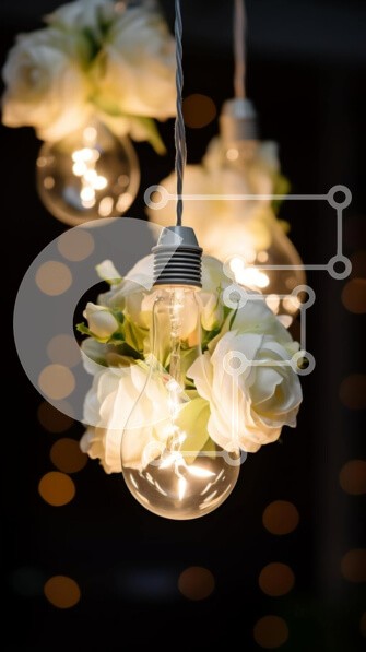 Υπάρχει δυνατότητα προσωποποίησης με δική σας φωτογραφία και προσαρμογής διαστάσεων κατόπιν παραγγελίας. Το συγεκεριμενο puzzle παρουσιαζει Αυτή η εικόνα παρουσιάζει τρεις λαμπτήρες που κρέμονται από την οροφή, ο καθένας στολισμένος με μια σύνθεση λευκού λουλουδιού. Τα γύρω φώτα ενισχύουν την οπτική έλξη της σκηνής, δημιουργώντας μια κομψή και κομψή εσωτερική διακόσμηση. Τα φρέσκα και καλοδιατηρημένα λουλούδια προ