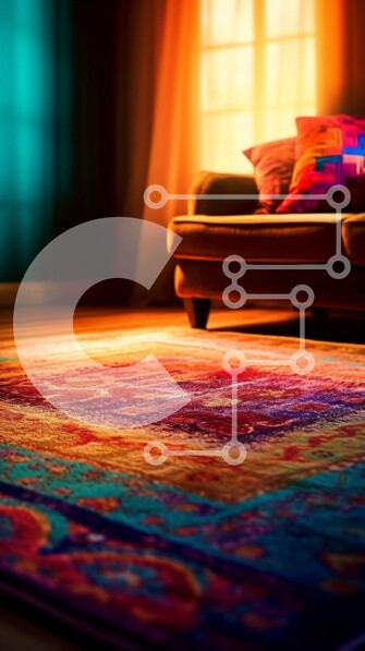Υπάρχει δυνατότητα προσωποποίησης με δική σας φωτογραφία και προσαρμογής διαστάσεων κατόπιν παραγγελίας. Το συγεκεριμενο puzzle παρουσιαζει Αυτή είναι μια εικόνα ενός καθιστικού με ένα πολύχρωμο χαλί με μοτίβο από λουλούδια και φύλλα. Μπροστά του τοποθετείται ένας έντονο κόκκινος καναπές με πράσινο και μπλε μαξιλάρι ριχτάρι. Οι τοίχοι είναι βαμμένοι σε γαλάζιο, και υπάρχει ένα μεγάλο παράθυρο πίσω από τον καναπέ π
