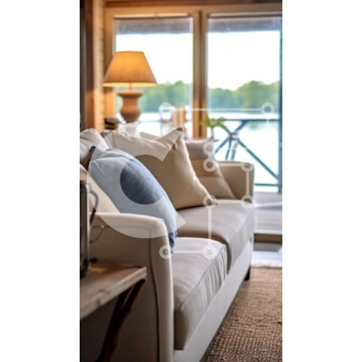Υπάρχει δυνατότητα προσωποποίησης με δική σας φωτογραφία και προσαρμογής διαστάσεων κατόπιν παραγγελίας. Το συγεκεριμενο puzzle παρουσιαζει Αυτή η εικόνα διαθέτει ένα όμορφο σαλόνι με έναν άνετο καναπέ, ένα τραπεζάκι του καφέ και μεγάλα παράθυρα που προσφέρουν απίστευτη θέα σε μια γαλήνια λίμνη. Το δωμάτιο έχει σχεδιαστεί για να είναι άνετο και φιλόξενο, ιδανικό για χαλάρωση και απόλαυση της φυσικής ομορφιάς έξω.
