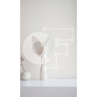 Υπάρχει δυνατότητα προσωποποίησης με δική σας φωτογραφία και προσαρμογής διαστάσεων κατόπιν παραγγελίας. Το συγεκεριμενο puzzle παρουσιαζει Αυτή η εικόνα παρουσιάζει ένα λευκό ειδώλιο με φτερά αγγέλου, τοποθετημένο σε ένα τραπέζι. Συνοδεύεται από ένα μικρό φυτό σε γλάστρα, υποδηλώνοντας ότι αποτελεί μέρος μιας διακοσμητικής διάταξης. Άλλα αντικείμενα όπως βάζα και ράφια είναι επίσης παρόντα, προσφέροντας επιπλέον