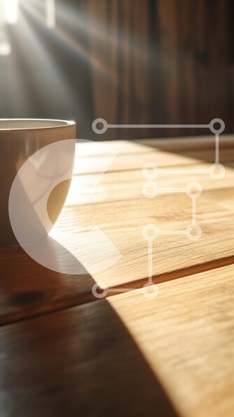 Υπάρχει δυνατότητα προσωποποίησης με δική σας φωτογραφία και προσαρμογής διαστάσεων κατόπιν παραγγελίας. Το συγεκεριμενο puzzle παρουσιαζει Η εικόνα παρουσιάζει μια κοντινή άποψη ενός λείου ξύλινου τραπεζιού λουσμένου στο ζεστό φως του ήλιου, με ένα απλό κεραμικό μπολ τοποθετημένο πάνω του. Το φως του ήλιου ρέει μέσα από ένα κοντινό παράθυρο, δημιουργώντας απαλές ακτίνες που φωτίζουν τη σκηνή και ρίχνουν απαλές σκ