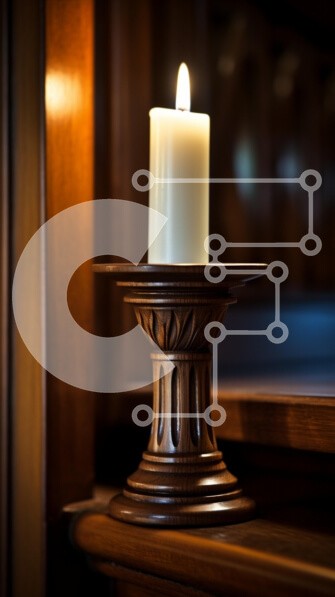 Υπάρχει δυνατότητα προσωποποίησης με δική σας φωτογραφία και προσαρμογής διαστάσεων κατόπιν παραγγελίας. Το συγεκεριμενο puzzle παρουσιαζει Αυτή η εικόνα παρουσιάζει μια όμορφα κατασκευασμένη ξύλινη κηροπήγια με ένα αναμμένο λευκό κερί στην κορυφή. Το κερί εκπέμπει μια απαλή, ζεστή λάμψη, αναδεικνύοντας τις περίπλοκες λεπτομέρειες της ξύλινης βάσης. Το φόντο αποτελείται από πλούσια ξύλινη επένδυση, δημιουργώντας μ