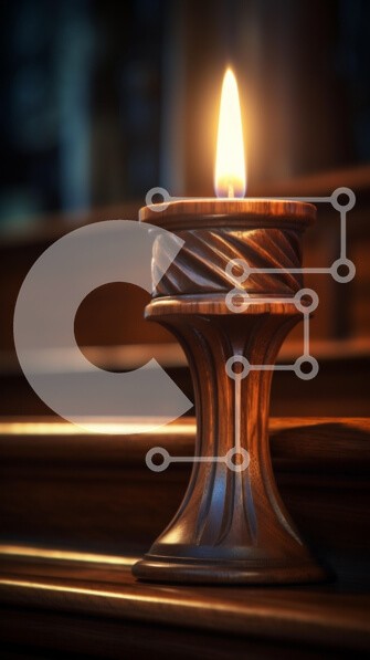 Υπάρχει δυνατότητα προσωποποίησης με δική σας φωτογραφία και προσαρμογής διαστάσεων κατόπιν παραγγελίας. Το συγεκεριμενο puzzle παρουσιαζει Η εικόνα παρουσιάζει μια όμορφα φτιαγμένη ξύλινη κηροπήγια με ένα αναμμένο κερί, που κάθεται σε μια σειρά από σκάλες. Η ζεστή λάμψη της φλόγας έρχεται σε αντίθεση με τις πλούσιες υφές του ξύλου, δημιουργώντας μια ζεστή και φιλόξενη ατμόσφαιρα. Ο περίπλοκος σχεδιασμός του κηροπ